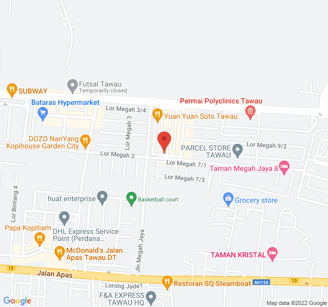 通訊處:No. 10167 Lot 25, Batu 3, Jalan Megah Jaya, Off Jalan Apas, Taman Megah Jaya, Tawau, Sabah 91007